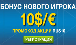 - В пределах данной акции действует правило: “бесплатная ставка может быть получена одним лицом один раз”. То есть, счета-дубликаты запрещены. $10/10€ будет начислено для одного адреса, счета, электронного адреса, IP-адреса и одного номера карты.